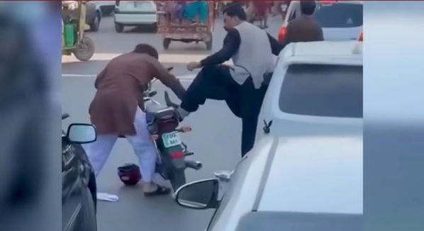 موٹرسائیکل سوار پر تشدد کرنے والا کار سوار گرفتار، ملزم احد گجر پٹرولنگ پولیس کا اہلکار نکلا