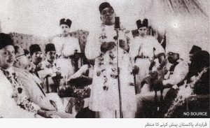 مسلم لیگ کا سالانہ اجلاس لاہور میں منعقد کروانے اور اس اجلاس میں ’دو آزاد اور خودمختار ریاستوں‘ کے قیام کی قرار داد منظور کروانے میں دو شخصیتوں نے بہت اہم رول ادا کیا تھا۔ ان میں ایک پنجاب کے وزیر اعظم سر سکندر حیات اور دوسری شخصیت بنگال کے وزیر اعظم مولوی اے کے فضل الحق کی تھی۔ یہ دوسری عالمی جنگ کا زمانہ تھا سیاسی سرگرمیوں پر پابندی عائد تھی اور ہندوستان کو برطانوی سرکار نے جنگی عمل کا حصہ بنا دیا تھا۔ برطانیہ کی اس پالیسی کے خلاف احتجاج کرتے ہوئے کانگریس کی آٹھ صوبائی حکومتیں نومبر 1939ء میں مستعفی ہو چکی تھیں لیکن پنجاب اور بنگال کے وزرائے اعظم سر سکندر حیات اور مولوی اے کے فضل الحق نے مستعفی ہونے سے انکار کر دیا تھا بلکہ یہ دونوں بڑھ چڑھ انگریز سرکار کی جنگی مساعی میں حصہ لے رہے تھے۔ پنجاب سے ہزاروں نوجوان برطانوی فوج میں بھرتی ہو کر جنگ کا ایندھن بن رہے تھے۔ ان حالات میں منٹو پارک لاہور میں مسلم لیگ کا سالانہ جلسہ ہونے جا رہا تھا۔ سٹیج پر صوبے کا وزیراعظم براجمان تھا لہذا حاضرین کی موجودگی کا تو کوئی مسئلہ نہیں تھا۔ سرکاری وسائل اور اہل کار جلسے میں حاضرین کو لانے کے لئے دن رات ایک کئے ہوئے تھے۔ یہ آل انڈیا مسلم لیگ کا جلسہ نہیں بلکہ پنجاب حکومت کی طرف سے سیاسی طاقت کا اظہار تھا۔ یہ اجلاس ان سیاسی قوتوں کے خلاف منعقد ہو رہا تھا جو دوسری عالمی جنگ میں ہندوستان کی شمولیت کے خلاف تھیں اور اس کے منتظمین وہ تھے جو ہندوستان کی انگریز سرکار کے ایما پر دوسری عالمی جنگ میں بر طانیہ کو مدد و تعاون فراہم کرنے کے حامی تھے۔