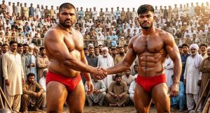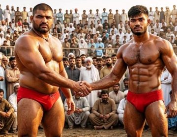 فیصل آباد: رستم پاکستان دنگل میں پاک آرمی کے پہلوان گلزار عرف گلو بٹ نے واپڈا کے پہلوان عدنان ٹائراں والا کو شکست دے کر رستم پاکستان کا ٹائٹل جیت لیا ہے۔ پاکستان ریسلنگ فیڈریشن کے زیر اہتمام رستم پاکستان دنگل کے لئے نور پور فٹبال اسٹیڈیم میں اکھاڑا سجایا گیا تھا جہاں دونوں پہلوںواں کے مابین زور آزمائی اور داو پیچ کا دلچسپ مقابلہ 22 منٹ جاری رہا۔ اس دوران گلزار پہلوان نے داو لگا کر عدنان پہلوان کو چت کرکے رستم پاکستان کا ٹائٹل اپنے نام کر لیا۔ پاکستان ریسلنگ فیڈریشن کی جانب سے رستم پاکستان دنگل جیتنے والے گلزار پہلوان کو پانچ لاکھ روپے اور ٹرافی (گرز ) جبکہ دوسرے نمبر پر آنے والے عدنان پہلوان کو تین لاکھ روپے کے انعام سے نوازا گیا۔ رستم پاکستان کا ٹائٹل جیتنے پر گلو بٹ کے ساتھی پہلوانوں اور حامیوں نے بھنگڑے ڈالے اور نوٹ نچھاور کر کے بھرپور جشن منایا۔ فائنل مقابلے سے قبل ملک کے مختلف شہروں کے نامور پہلوانوں کے مابین 20 مقابلے ہوئے۔ اس موقع پر شائقین کی ایک بڑی تعداد موجود تھی اور انہوں نے بھرپور جوش وخروش سے پہلوانوں کے فن کی داد دی۔